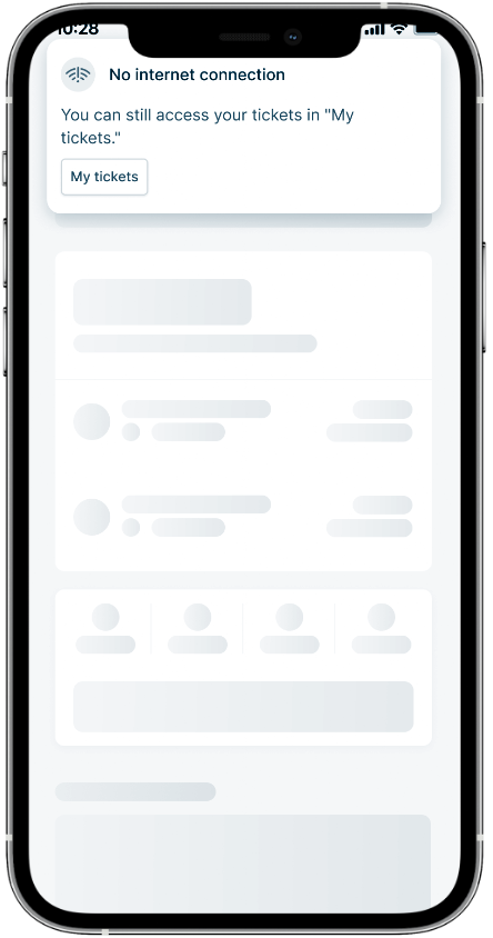 Even when you're offline and don't have any internet connection, you can still easily access your active SNCB/NMBS and De Lijn tickets that you've bought on the Skipr mobile application.
