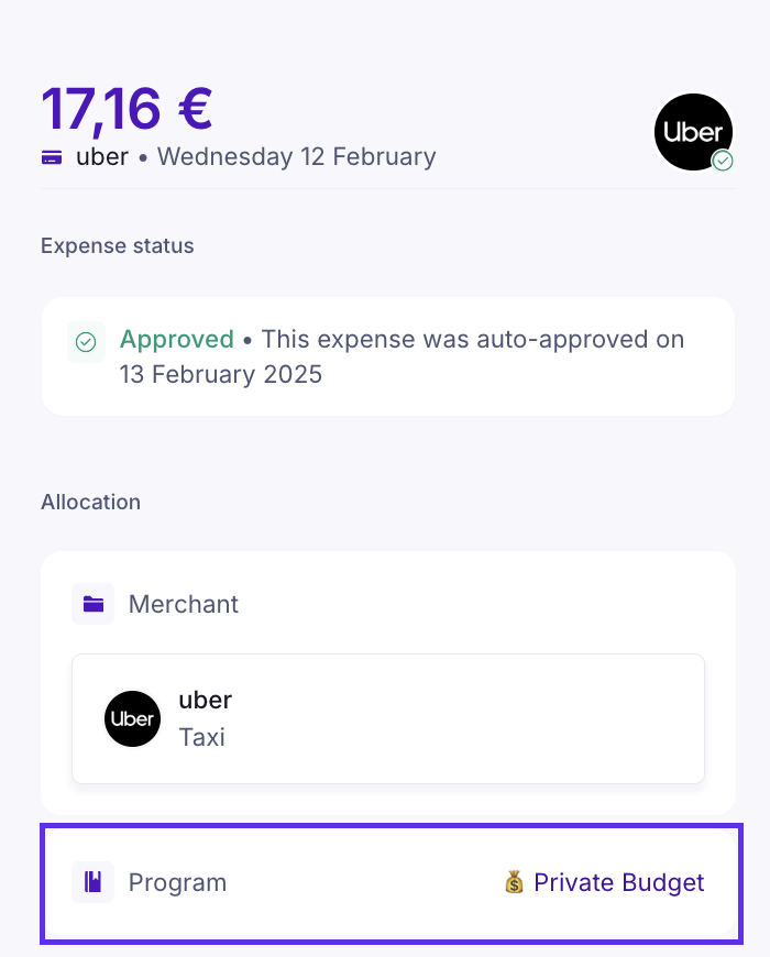 Click on the relevant expense or reimbursement request in your expense/request history: