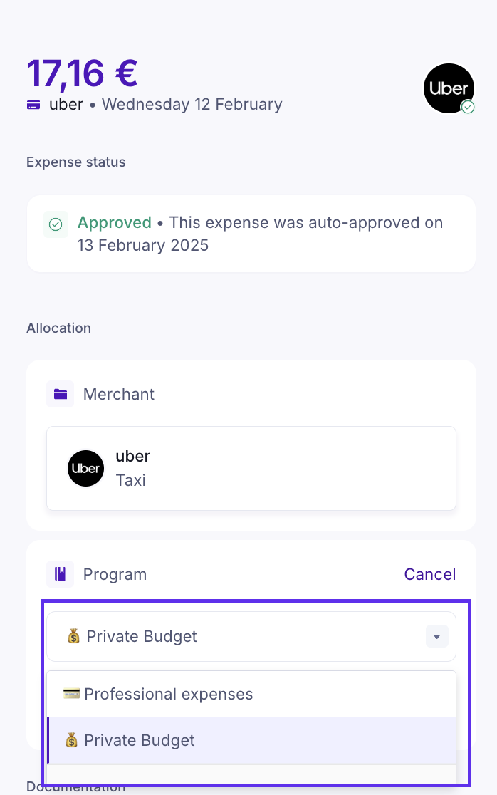 Here are the steps to follow in order to change the program in which an expense or reimbursement request is categorized: