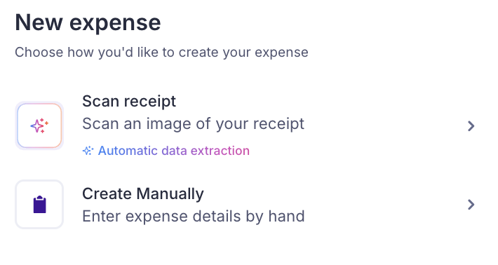 - Select "Scan receipt" to take a picture of the document or "Upload file" to select a document or a picture on your phone.