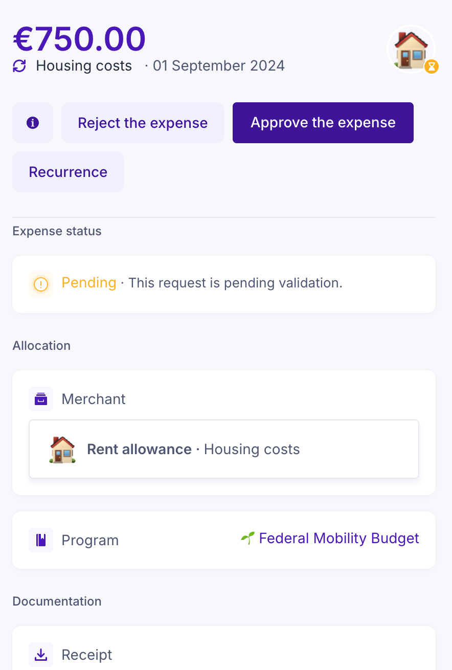 - Approve if it complies with your company's mobility policy, and the employee has provided the necessary info (receipt/comment)