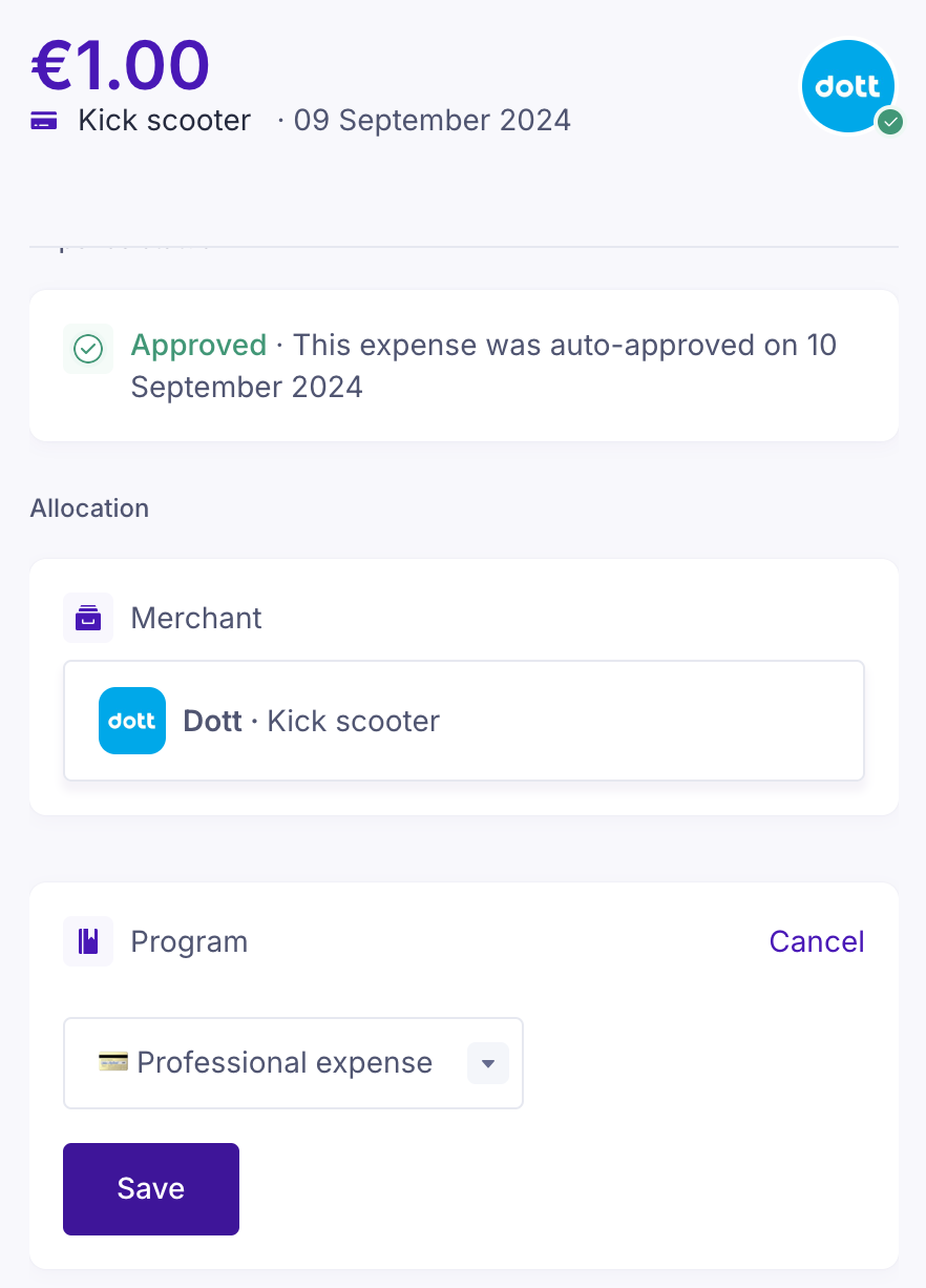 💡 You can only reallocate the expense to a Program that allows the mobility service of the expense