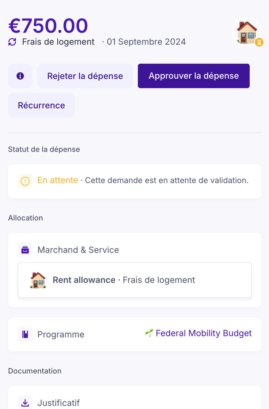 - Approuver si elle est conforme à la politique de mobilité de votre entreprise et que l'employé a fourni les informations nécessaires (reçu/commentaire)