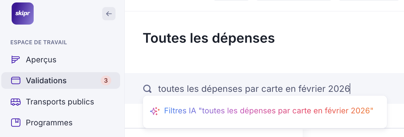 Dans cet article, nous expliquons comment filtrer la liste des dépenses à l’aide de l’IA et les différentes façons de valider une ou plusieurs dépenses.