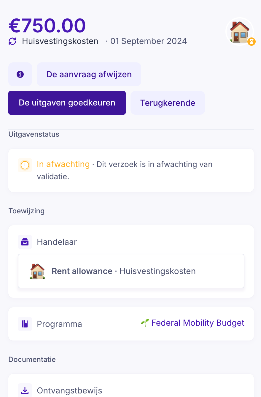 - Goedkeuren als deze voldoet aan het mobiliteitsbeleid van uw bedrijf en de medewerker de nodige informatie heeft verstrekt (ontvangstbewijs/commentaar)