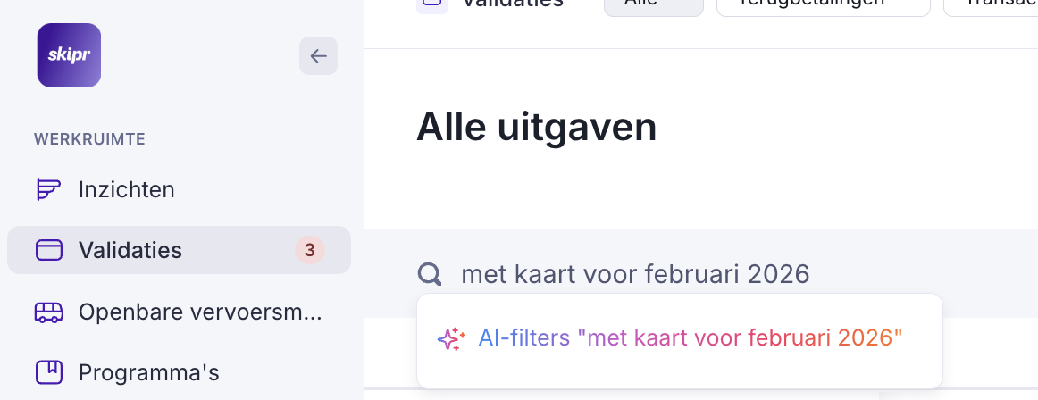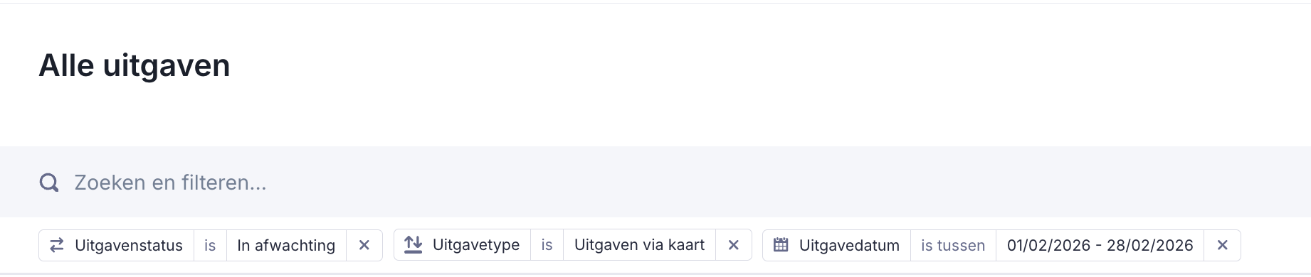 U kunt de lijst met alle uitgaven filteren door de filters handmatig te gebruiken of door gebruik te maken van onze AI-filterfunctie.