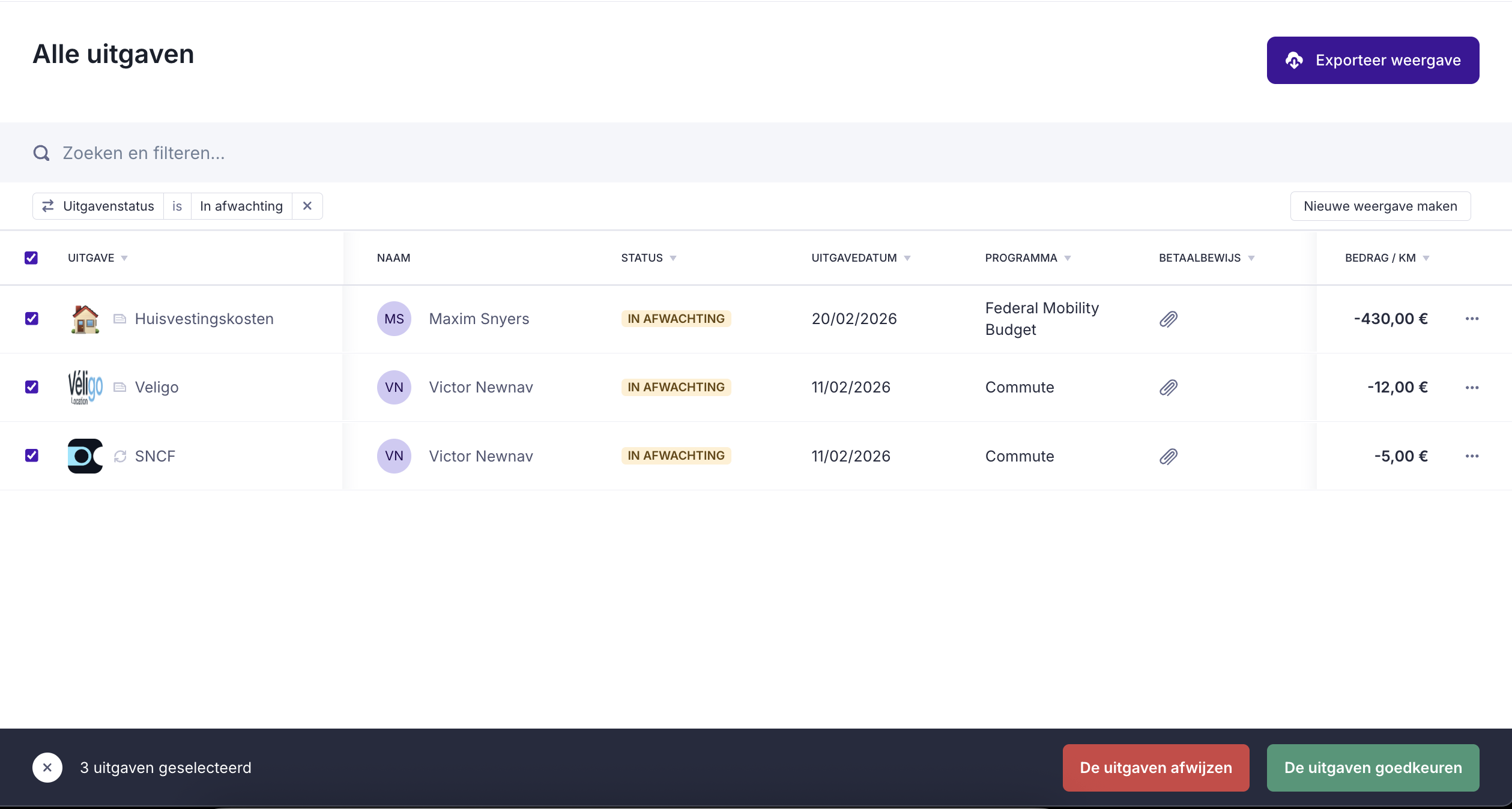 💡 Uitgaven kunnen één voor één of in bulk gevalideerd worden.