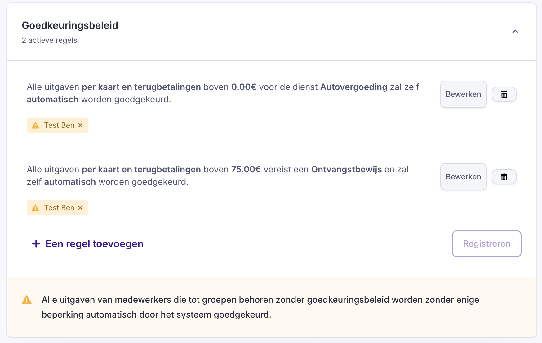 Je kunt ook verschillende goedkeuringsbeleidslijnen instellen om de uitgaven en terugbetalingen te beheren.